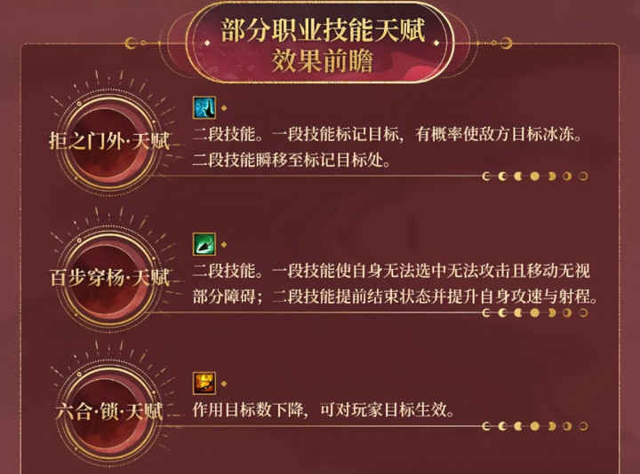 办事本事天资的成果就更为丰富了,有百步穿杨▪天资和万夫莫开▪天资等等,少侠们的办事对应天资大约很快就会更新,环球不错静静期待。