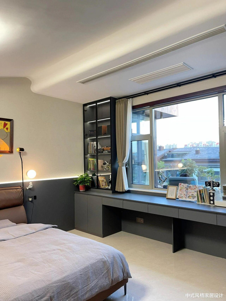 顶部的蓄意则承载了录取好意思学的骨架。传统的回形吊顶作念了简化管束,搭配尽心挑选的L型线条,粗细之间勾画出空间的档次。灯光是氛围的灵魂,她废弃了耀眼的主光,采取了进取打光的全铜玉石主灯。光辉先温暖地洒向天花,再漫反射至扫数房间,营造出静谧柔软的光感,一如录取园林中对光影的奥密专揽。大地是淡淡的暖灰色大砖通铺,无过门石的蓄意让空间更显连贯开畅,也于低调中奠定了现代生存的便利基石。